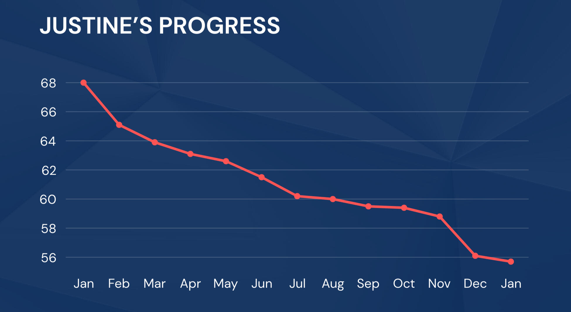 “Bil-problemi fl-irkoppa u stil ta’ ħajja impenjat ħafna, saħħti bdiet niezla bil-mod. In-nuqqas ta’ ħin u l-istress għamluha diffiċli biex nibqa’ konsistenti. Li ħdimt ma’ Matthew għeni nagħmel bidliet sempliċi li jaqblu mal-ħajja tiegħi, u fuq 12-il ġimgħa tlift 15-il kilo u fl-aħħar erġajt ħassejtni fil-kontroll tas-saħħa tiegħi.”